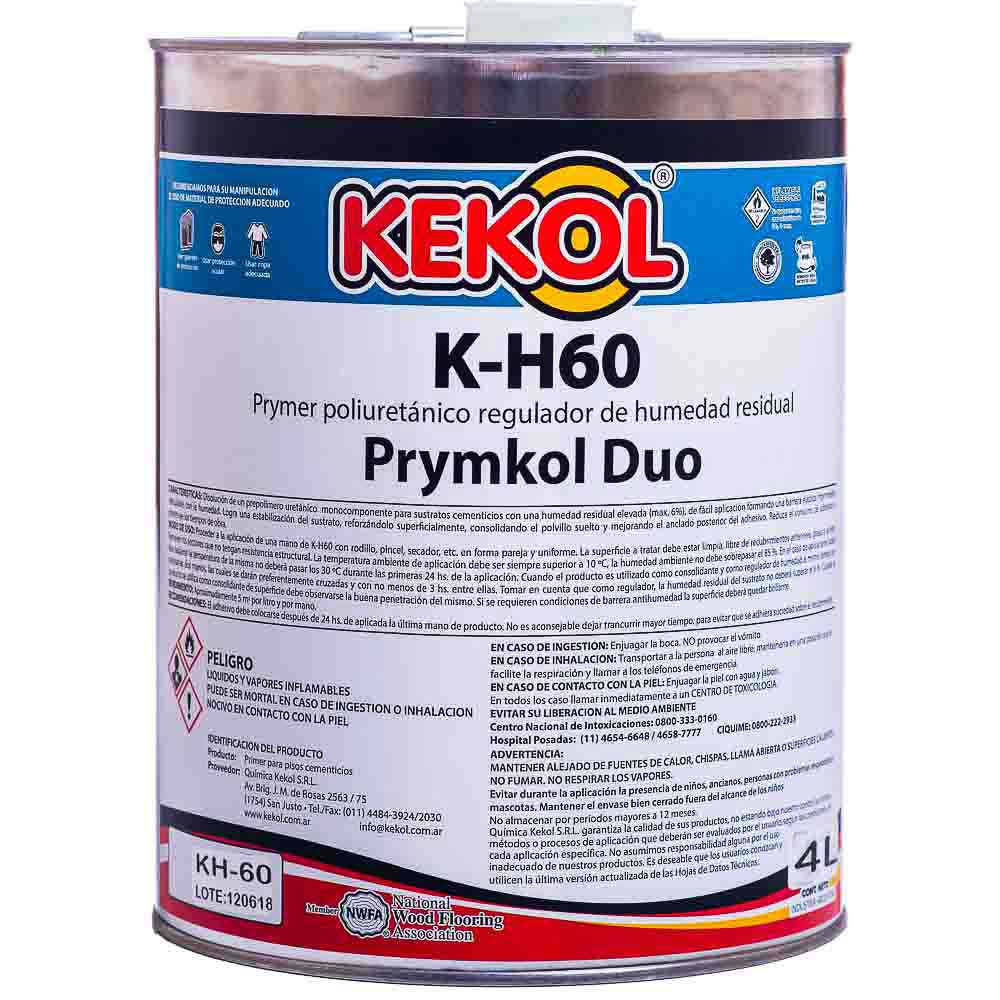 El K-H60 es una disolución de un pre polímero uretánico, de altos sólidos, que retícula en contacto con la humedad ambiente. Estabiliza y refuerza la superficie en sustratos difíciles, formando una barrera elástica impermeable que consolida el polvillo suelto y optimiza el anclaje posterior del adhesivo. Brinda excelente penetración, alta consolidación y es compatible con la más amplia gama de sistemas de pegado (Epoxi, Uretánico, etc.) De fácil y rápida aplicación, reduce el consumo de adhesivos y disminuye los tiempos de obra. IMPORTANTE: Kekol K-H60 no es un impermeabilizante de sustratos. No detiene ni aísla la humedad emergente de los cimientos. Su función como regulador se limita a la nivelación de la humedad retenida en las carpetas, producto de la construcción.